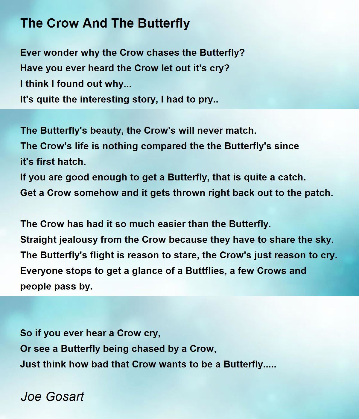 The Crow And The Butterfly - The Magpie Crow Real Butterfly Framed Natural History Direct, The butterfly symbolizing the childs life, and the crow, its death.. August 5, 2020 at 4:21 pm ·. The crow and the butterfly by shinedown song meaning, lyric interpretation, video and chart position Just like the crow chasing the butterfly. He made no movement that he noticed the crow, and went on about his business, but was not entranced with the crow as the much as the crow seemed. Log in or register to post comments;
